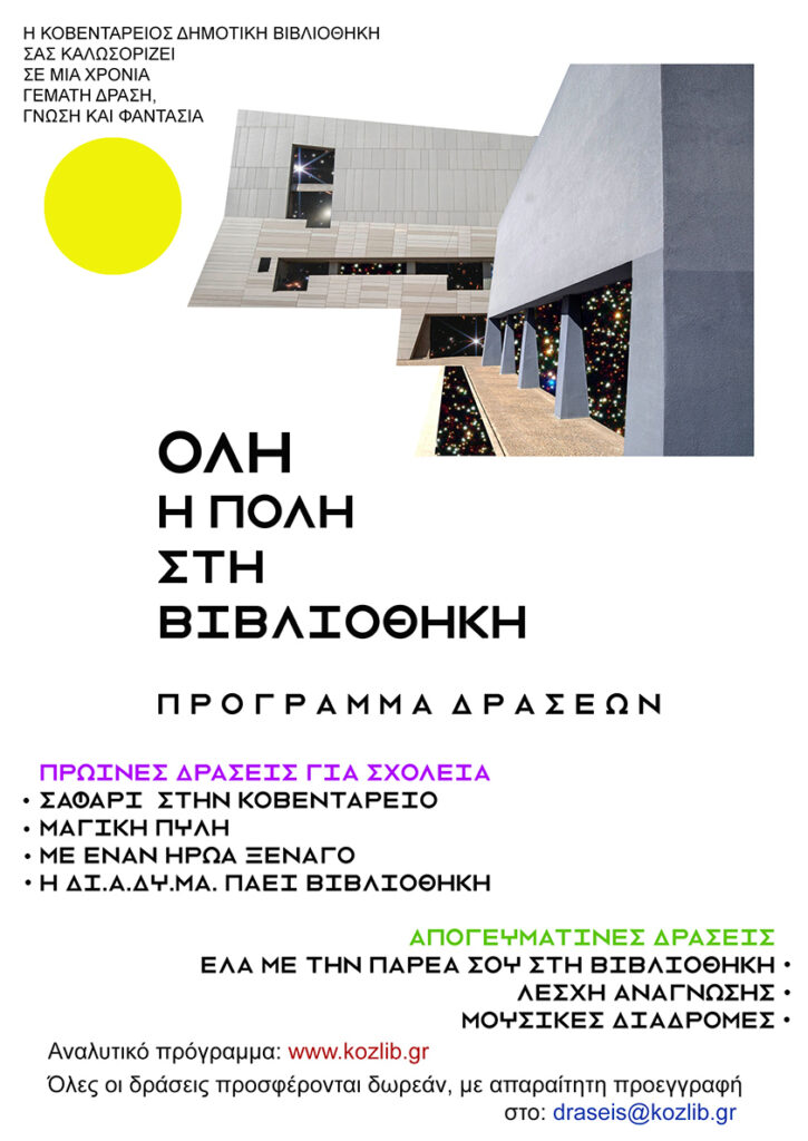 Η Κοβεντάρειος Δημοτική Βιβλιοθήκη Κοζάνης ανοίγει τη νέα χρονιά με ένα πλούσιο πρόγραμμα δράσεων για μικρούς και μεγάλους!