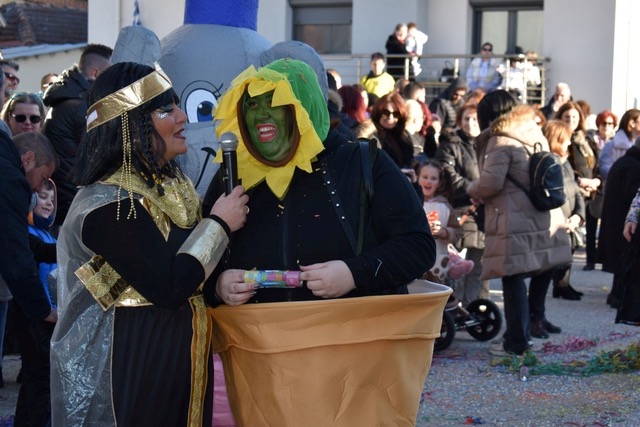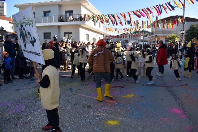 Μικροί και μεγάλοι καρναβαλιστές, συνοδευόμενοι από εντυπωσιακά στολισμένα άρματα, μετέτρεψαν τον κεντρικό δρόμο σε μια πολύχρωμη γιορτή γεμάτη μουσική, ρυθμό και ζωντάνια, προσφέροντας μοναδικές εικόνες που έκαναν την παρέλαση αξέχαστη.