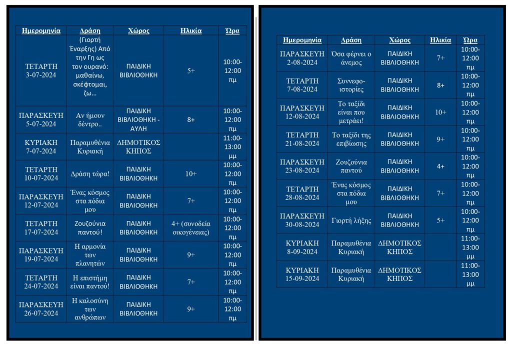 Οι καλοκαιρινές Δράσεις εντάσσονται στο πλαίσιο της Καλοκαιρινής Εκστρατείας Ανάγνωσης και Δημιουργικότητας του Δικτύου Ελληνικών Βιβλιοθηκών της Εθνικής Βιβλιοθήκης της Ελλάδας.